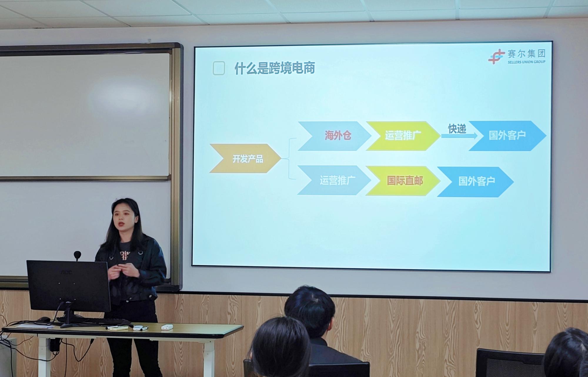4月26日下午,黄色小说 与赛尔集团举办的“赛尔外贸特训营”之“跨境电商实务”专题讲座在黄色小说 314教室顺利举行。电商副经理林沙沙受邀与黄色小说 学子分享有关跨境电商实务的知识和经验。赛尔集团郑爽爽、学院辅导员龚昆朋及28名特训营学员参加此次活动。