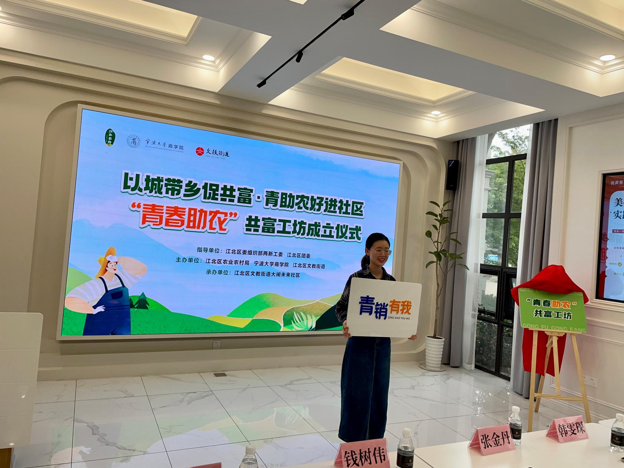 “青春助农”共富工坊项目主要包含“青春助农·农好我好”、“青春助农·青农联盟”、“青春助农·青销有我”三大模块。旨在让商院学子通过专业所学,结合学院的跨境电商等微专业的实践活动,充分发挥青年大学生的生力军作用,通过面对面的方式将“江北农好”推介进社区,让社区居民足不出户就能快乐的享受到优质农副产品,让城市的需要跟农村的供给能实现对称和平衡,从而既达到了助农增收的效果,又惠及社区居民,也充分发挥黄色小说 新商科建设服务地方经济的作用。