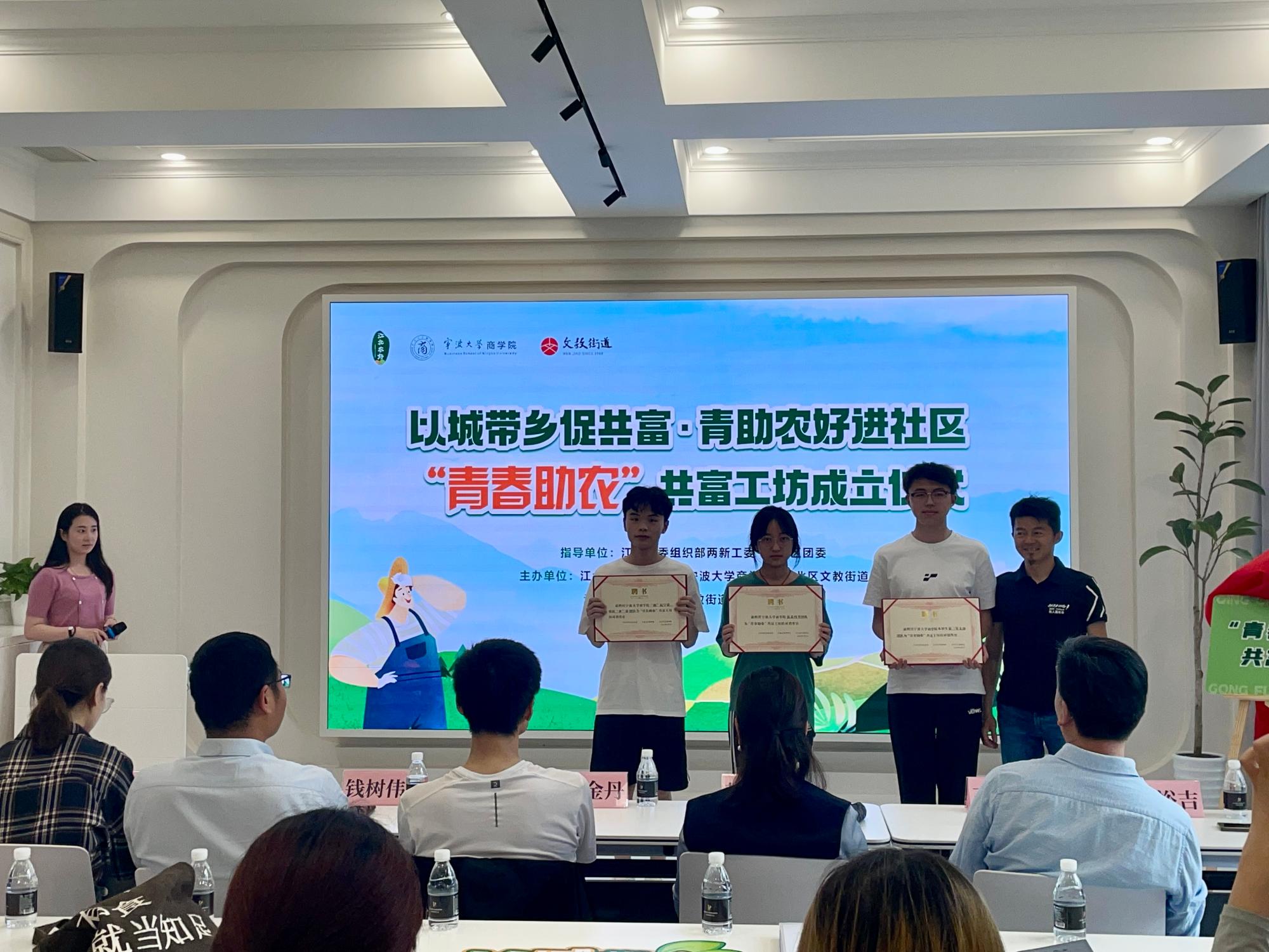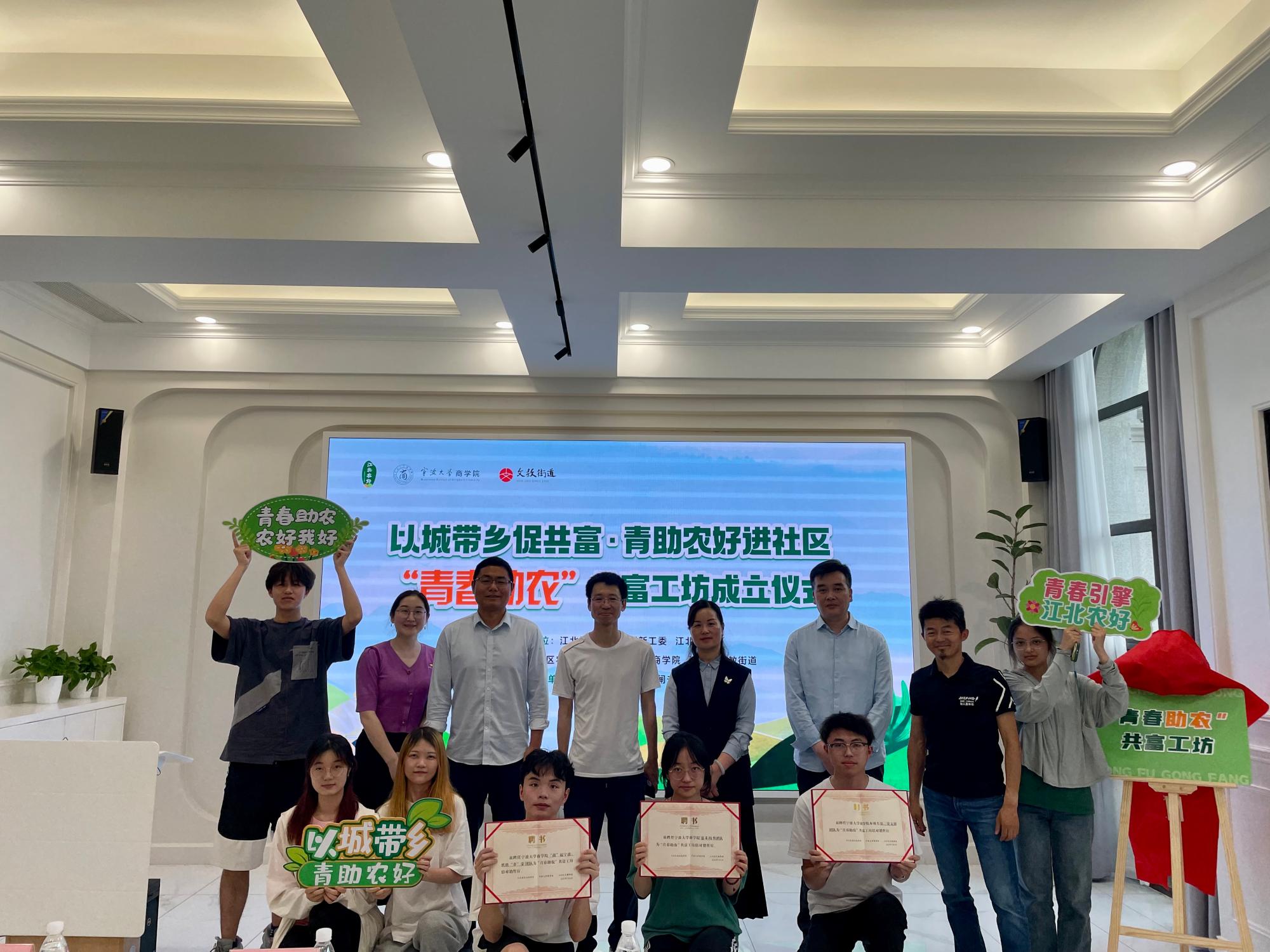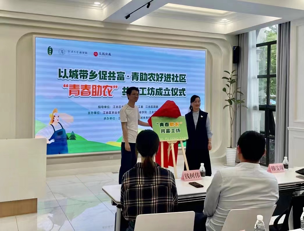 5月4日下午,五四青年节这天,由黄色小说 、江北区农业农村局和江北区文教街道联合建设的“青春助农”共富工坊在大闸未来社区正式揭牌成立,这也是黄色小说 青年深入学习贯彻习近平新时代中国特色社会主义思想,助力乡村振兴、带动共同富裕行动的一个生动实践。
