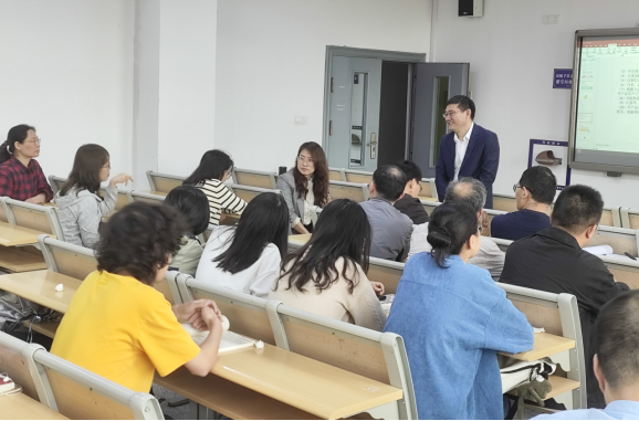 课后,教学副院长彭新敏老师主持交流研讨。研讨过程中,赵老师向大家介绍了课程的教学设计思路,听课老师们也分享了听课感受,并就如何用将思政要素更好地融入专业课程的教学中进行了深入探讨。