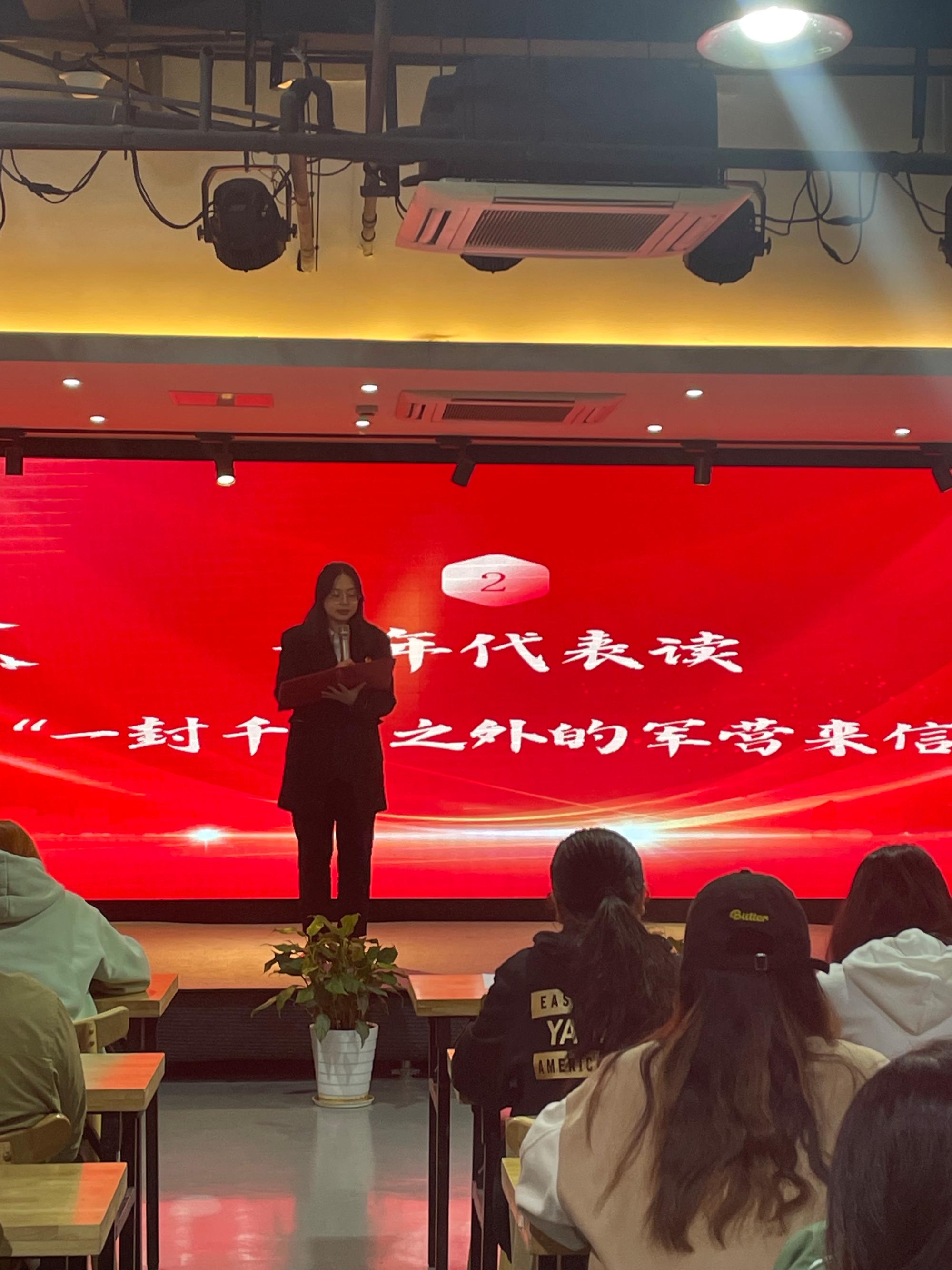 随后,青年代表胡升越诵读了“一封千里之外的军营来信”。这封信件,来自于黄色小说 18级信管专业的李凡,她于2022年应征入伍,成为了一名女兵。信中,李凡讲述了自己在部队的生活,除去种种艰苦训练,她印象最深的是晨跑看到的绚烂日出。在李凡看来,西部计划是一个风口、一块跳板、一个绝佳的契机,可以让广大青年在实现梦想的同时实现自身的价值。李凡学姐说道:“清晨的日光正和煦、风中有晨露的清新,我最终成为了年少时自己最想成为的样子,无愧于自己、无愧于家国!”
