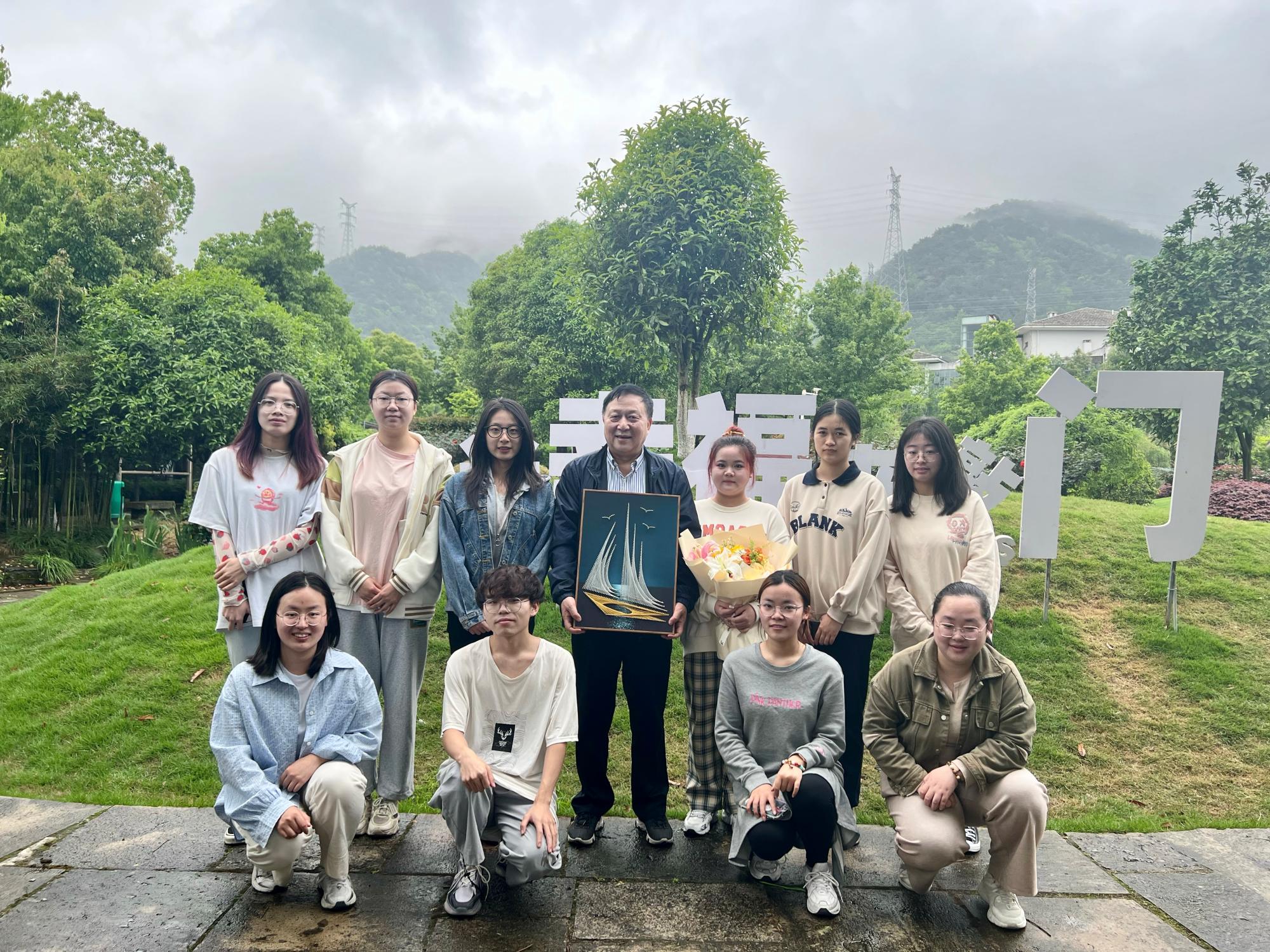最后,贺行平及陆汉幸董事长与黄色小说 老师同学一起在北仑区牡丹园合影留念。