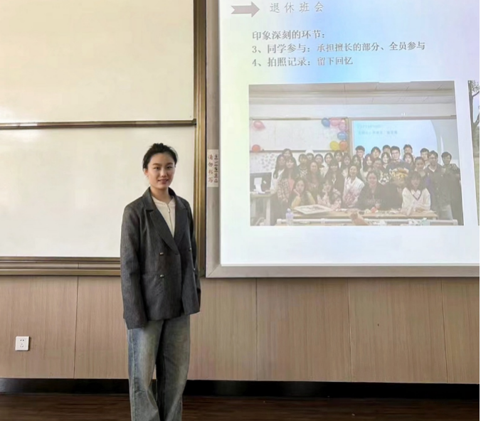 张园京分析了自己大一到大三的心路历程,从科创荣誉、学生工作、社会志愿以及班级特色四个角度出发,介绍了个人、班级获得的优秀成果和丰富经历。“所谓励志,就是在外界比较困难的情况下,仍然能保持乐观的心态和坚持做下去的勇气;未来我们会经历很多事情,艰辛会填满整个细节,但希望各位同学前行的勇气丝毫不减。”张园京如是说到。