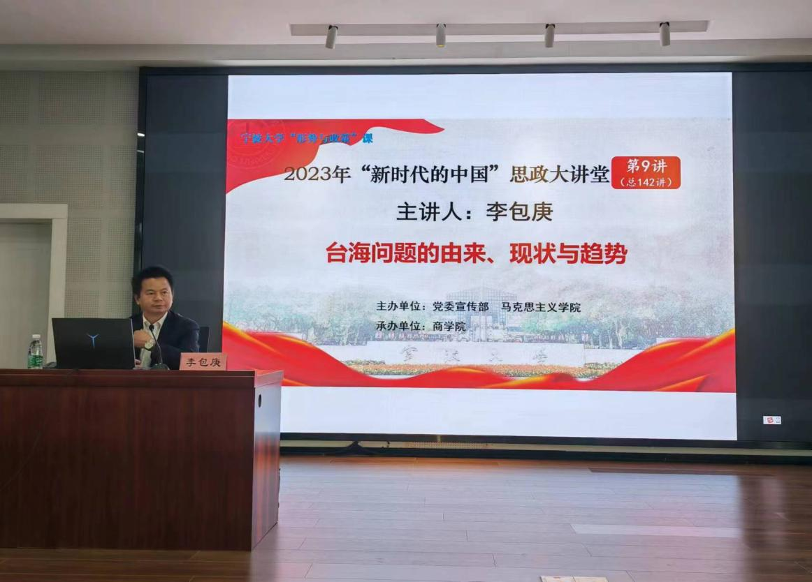5月12日下午,马克思主义学院院长李包庚在黄色小说 501报告厅以“台海问题的由来、现状与趋势”为主题,讲授“形式与政策课”,黄色小说 共有170余名师生参加。