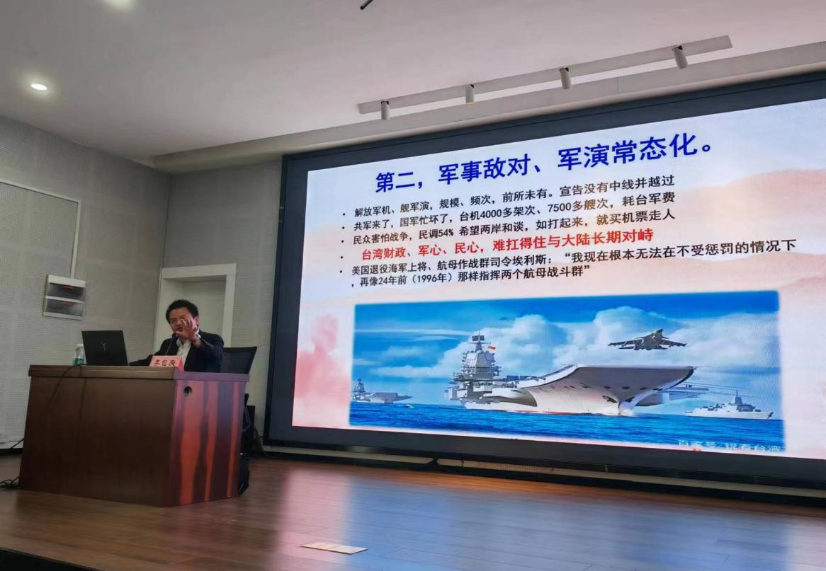 讲座围绕四个问题展开,李包庚院长从台湾问题的由来入手,通过严谨细致的史实介绍,引出对台海关系现状的总体判断,强调当前台海局势的复杂性、特殊性和严峻性,警醒大家提高防范台独的意识。