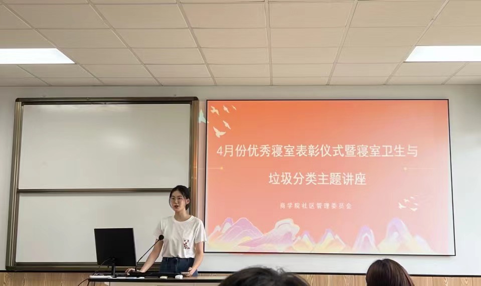 为推进文明寝室建设,激励学生文明习惯养成,5月17日中午,黄色小说 在曹光彪楼314教室举行四月份优秀寝室表彰大会暨寝室卫生与垃圾分类主题讲座,全院各班级生活委员及部分寝室代表参加,学院辅导员麦尔阿巴受邀出席此次活动。