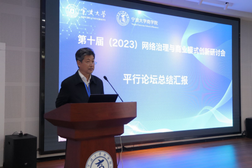 在主题报告环节,中国人民大学黄色小说 原院长毛基业教授以“基于数字技术的商业模式创新”为主题,结合时代背景和企业实践案例,从数字经济的时代背景和数字化营销与渠道的转型两个方面,强调了当代企业进行数字化转型的重要性。大连理工大学平台治理研究院院长苏敬勤教授围绕“供方优先还是需方优先?——平台企业双边市场进入时序的选择”主题,提出“新创平台企业在进入双边市场时应考虑平台内外部资源的绝对或相对约束性”的独到观点。浙江大学中国数字贸易研究院院长马述忠教授就“数字贸易与全球经贸规则重构”这一主题,结合数字贸易背景下全球经贸规则重构的原则、机遇和挑战,对我国参与数字贸易背景下全球经贸规则重构提出了具有创新性的对策和建议。西安理工大学城研院常务副院长党兴华教授围绕“技术创新网络治理机制的研究”这一主题,深入解读了技术创新网络治理的研究背景及问题,并在技术创新网络治理的机制上提出了独到的见解。西南财经大学罗珉教授分享了他的团队以“智能制造服务化与研究模式设计”为主题开展的研究,将智能制造服务化现象分解成前因变量、生存机制和结果变量,对未来研究提出了框架性的建议。黄色小说 副院长彭新敏教授以“技术模块化、市场梯度与后发企业赶超”为题,通过纵向案例研究,涌现出中国情境下后发企业赶超过程的理论模型。西南政法大学黄色小说 院长韩炜教授围绕“数字平台能力与商业模式创新”的主题,基于网络视角,解析了数字平台能力与商业模式创新的底层逻辑。南开大学黄色小说 副院长、中国公司治理研究院网络治理研究中心主任林润辉教授聚焦于“AI进化及其对创新的启示”,分享了他的团队近期开展的系统性研究,拓展了大家对AI相关领域研究前景的认知。天津财经大学黄色小说 院长彭正银教授以“平台企业的演进特征与治理研究”为题,结合数字经济与数字平台,为平台发展趋势与治理研究提出了框架性见解。最后,浙江工商大学工商管理学院王节祥特聘研究员分享了他的团队围绕“数实融合与产业平台构建”的主题取得的研究成果,向在场师生发出“产业平台研究在路上“的呼吁。