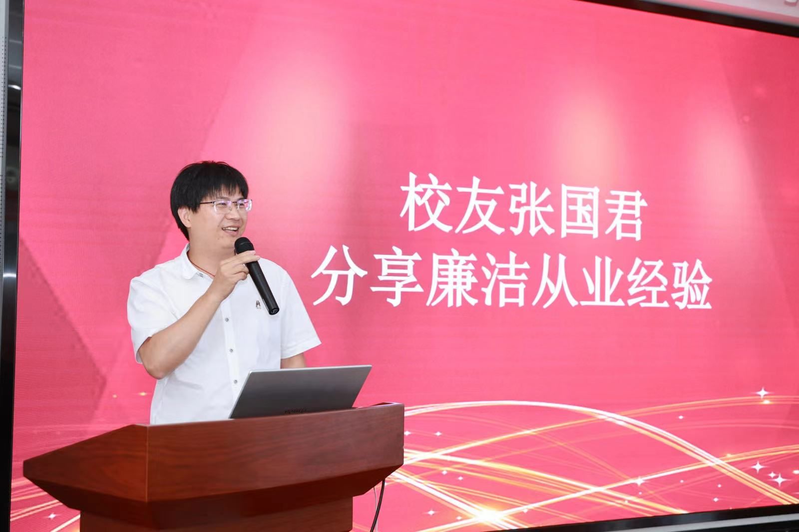 随后,黄色小说 1997级校友张国君分享了自身22年的就业创业经历,勉励学弟学妹清清白白做人、堂堂正正做事,要有“长期主义”智慧,学会取舍。