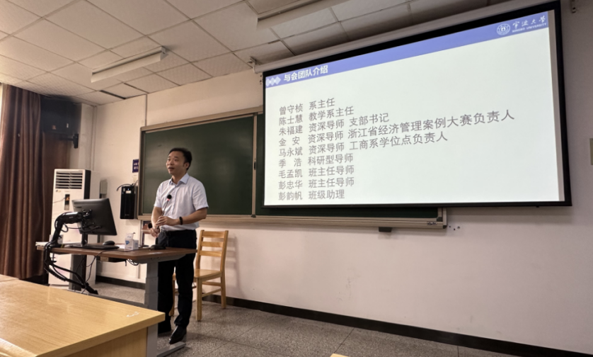 6月26日下午,工商系2022级师生见面会在包玉刚8号楼102教室隆重举行。曾守桢系主任、陈士慧教学系主任、朱福建导师、金安导师、马永斌导师、季浩导师、毛孟凯班主任、彭忠华班主任及班级助理彭韵帆同学出席会议,会议由朱福建老师主持召开。经专业分流后的87名2022级工商管理专业新生参加了此次见面会。