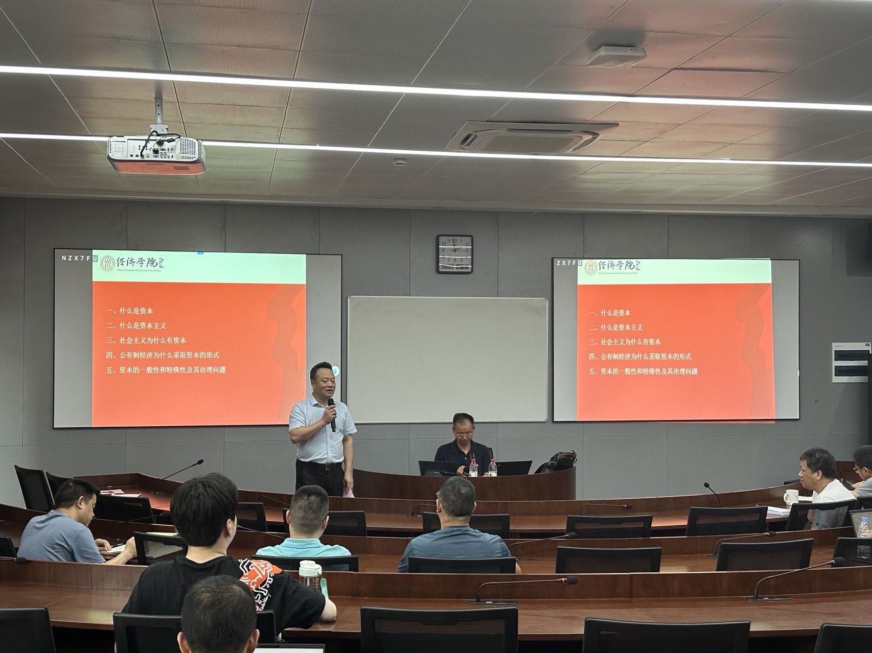 本次研修班主要由两个部分组成,第一部分为中国人民大学经济学院邱海平教授开展主题为“关于社会主义市场经济条件下的资本问题”的学术报告。在黄色小说 陈涛副院长的主持下,邱教授从习近平新时代中国特色社会主义理论出发,讲述在中国社会环境下的资本与资本主义的基本定义,以及资本主义存在的一定合理性,深入分析当前我国公有制经济采取资本形式的原因,并对资本主义在中国特色社会主义道路下的治理问题提出自己的独到见解。