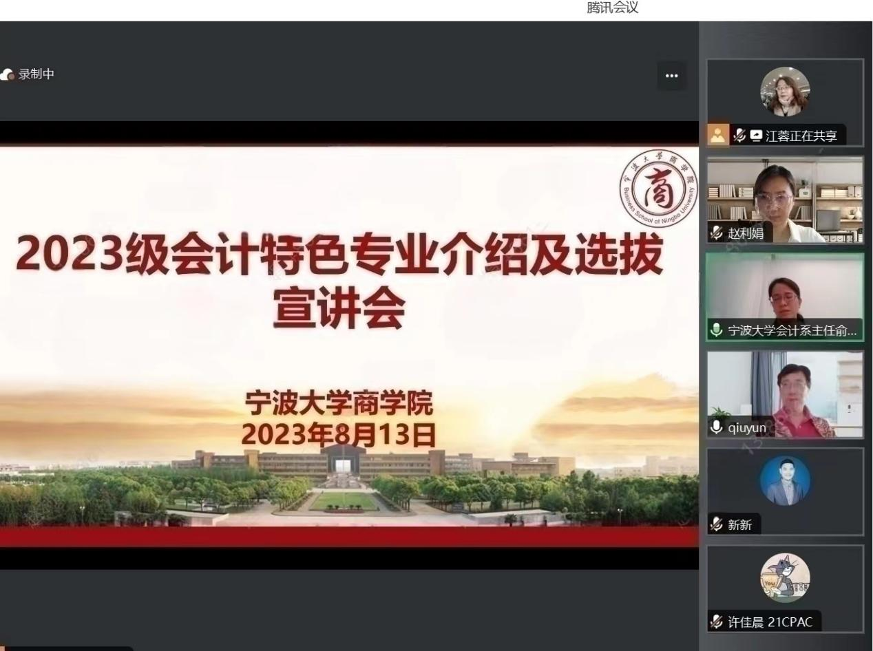 2023年6月高考结束以后,黄色小说 会计系陆续开展了会计学(CPA Canada)特色方向班的宣传招生工作。同时,根据《2023级会计学(CPA Canada)特色方向班选拔录取办法》文件精神和招生工作安排,于8月13日顺利召开了2023级会计特色专业介绍及选拔的线上宣讲会。