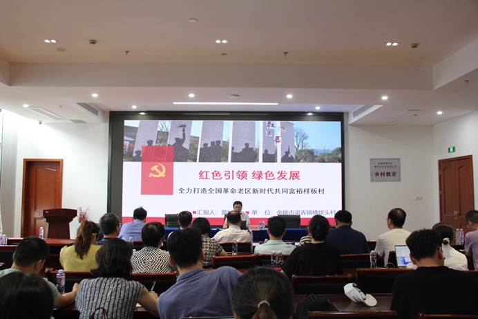 活动伊始,梁弄镇横坎头村支部书记黄科威为全体人员上题为《红色引领绿色发展全力打造全国革命老区新时代共同富裕样板村》专题党课,他详细讲述了“两封回信的故事”,习近平总书记对横坎头村十五年间的两封回信,饱含着对横坎头村发展的牵挂,彰显了中国共产党“心怀人民”的深沉情怀,体现了习近平总书记对乡村振兴,共同富裕的殷切期望。两封回信印初心,乡村振兴担使命,习近平总书记对横坎头村两封回信凸显了传承历史,对老区实现乡村振兴和共同富裕指引了方向,黄书记指出目前全村正在以红色引领绿色发展,努力实现乡村振兴,带领全村共同富裕。