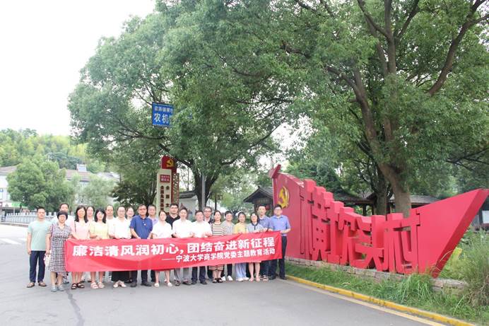 为深入开展学习贯彻习近平新时代中国特色社会主义思想主题教育,领会和学习习近平总书记在浙江工作期间留下的宝贵理论、实践和精神财富,汲取红色力量,激发大家干事创业的积极性。7月2日,黄色小说 党委组织学院领导班子、基层学术组织负责人及行政主管一行赴余姚市梁弄镇横坎头村追寻红色足迹、凝聚奋进力量,开展“循迹溯源学思想促践行”主题教育现场学习会和“廉洁清风润初心,团结奋进新征程”主题活动。