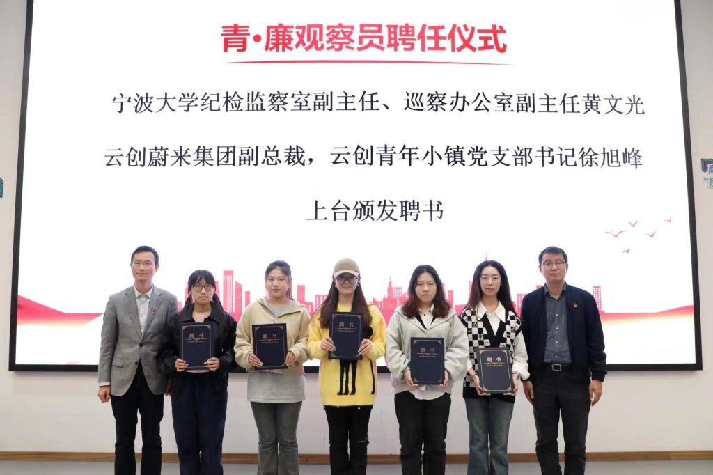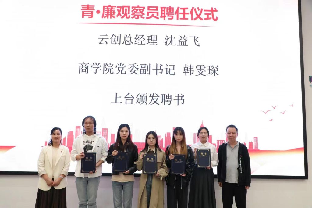 11月8日,“青·廉观察员”聘任仪式在江北云创小镇路演大厅隆重举行。校纪检监察室副主任黄文光、院党委副书记韩雯琛、云创蔚来集团副总裁、云创青年小镇党支部书记徐旭峰、云创总经理沈益飞、云创项目总监周金凤出席并为黄色小说 10位预备党员颁发了“青·廉观察员”聘书。