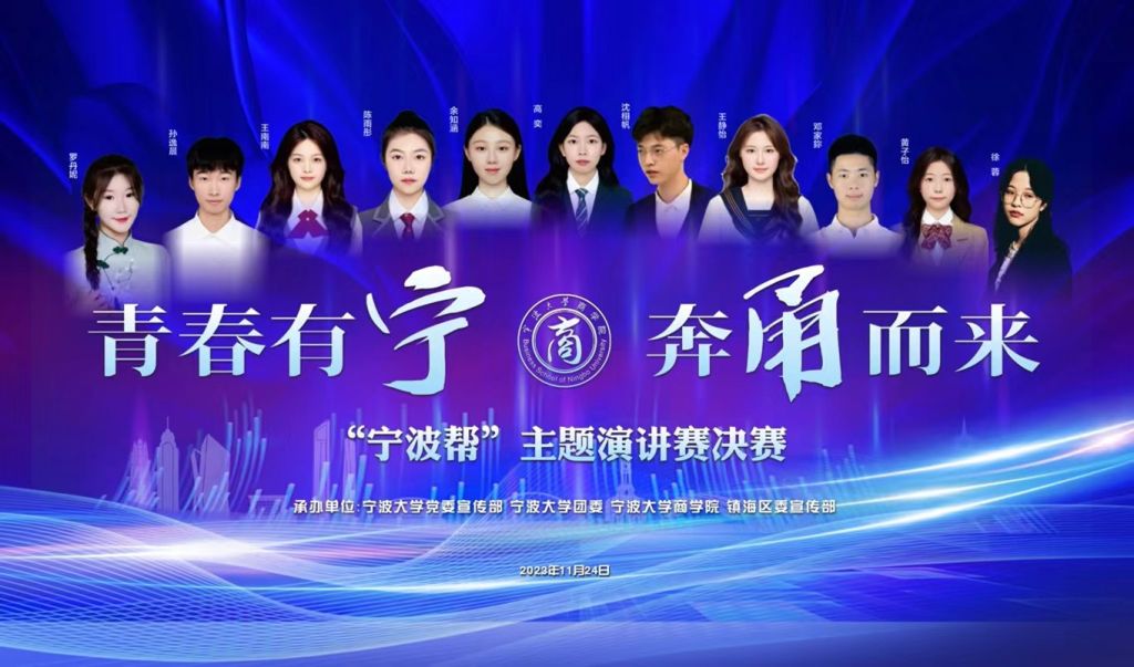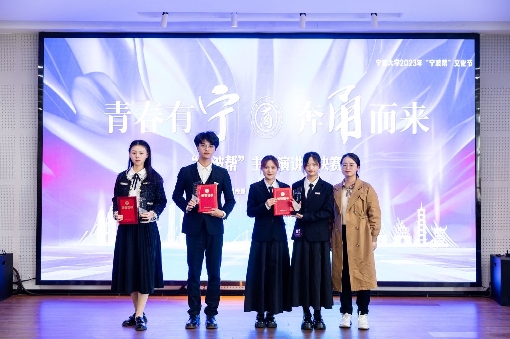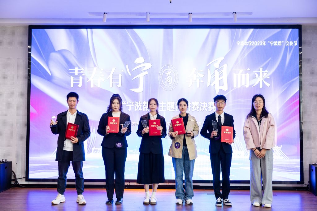 本次演讲赛以“青春有宁,奔甬而来”为主题,选手们围绕“宁波帮”人士爱国爱乡、创新创业的典型事迹,从青年视角出发,结合新时代社会发展实际,讲述如何传承好“宁波帮”精神。活动自启动以来,受到全校学生的广泛参与,共计收到40余名选手报名,经过初赛选拔,10位选手进入决赛。在决赛现场,选手们从“宁波帮与黄色小说 ”“宁波帮人物事迹”“宁波帮帮宁波”“宁波精神”多个角度切入,为观众们带来了一场精彩纷呈的演讲盛宴。本次比赛邀请到镇海区委宣传部文化发展和新闻出版科、校党委宣传部和学院团委书记等8位老师担任评委,通过激烈角逐,最后共评出一等奖2名,二等奖3名,三等奖5名,现场举行了隆重的颁奖典礼。