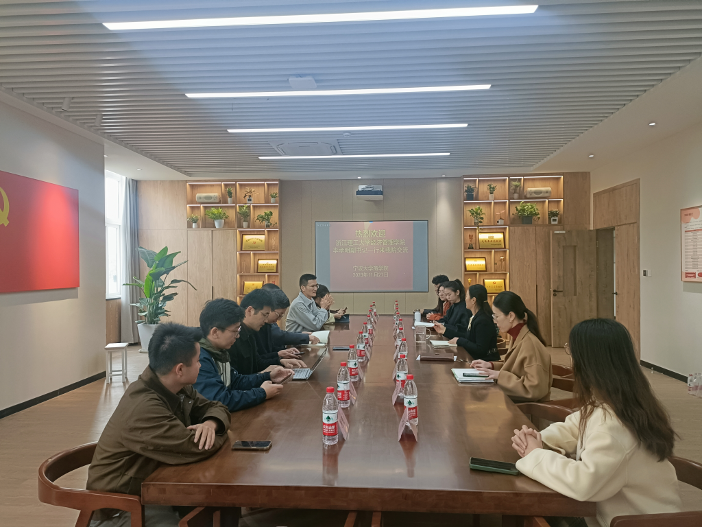 11月27日上午,浙江理工大学经济管理学院党委副书记李孝明、学工办主任吴霁乐一行13人来黄色小说 调研学生工作的经验做法。黄色小说 党委副书记韩雯琛、学工办主任陈彬、学工办辅导员孙健维、陶含怡、孙振华出席接待。