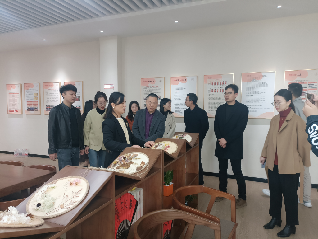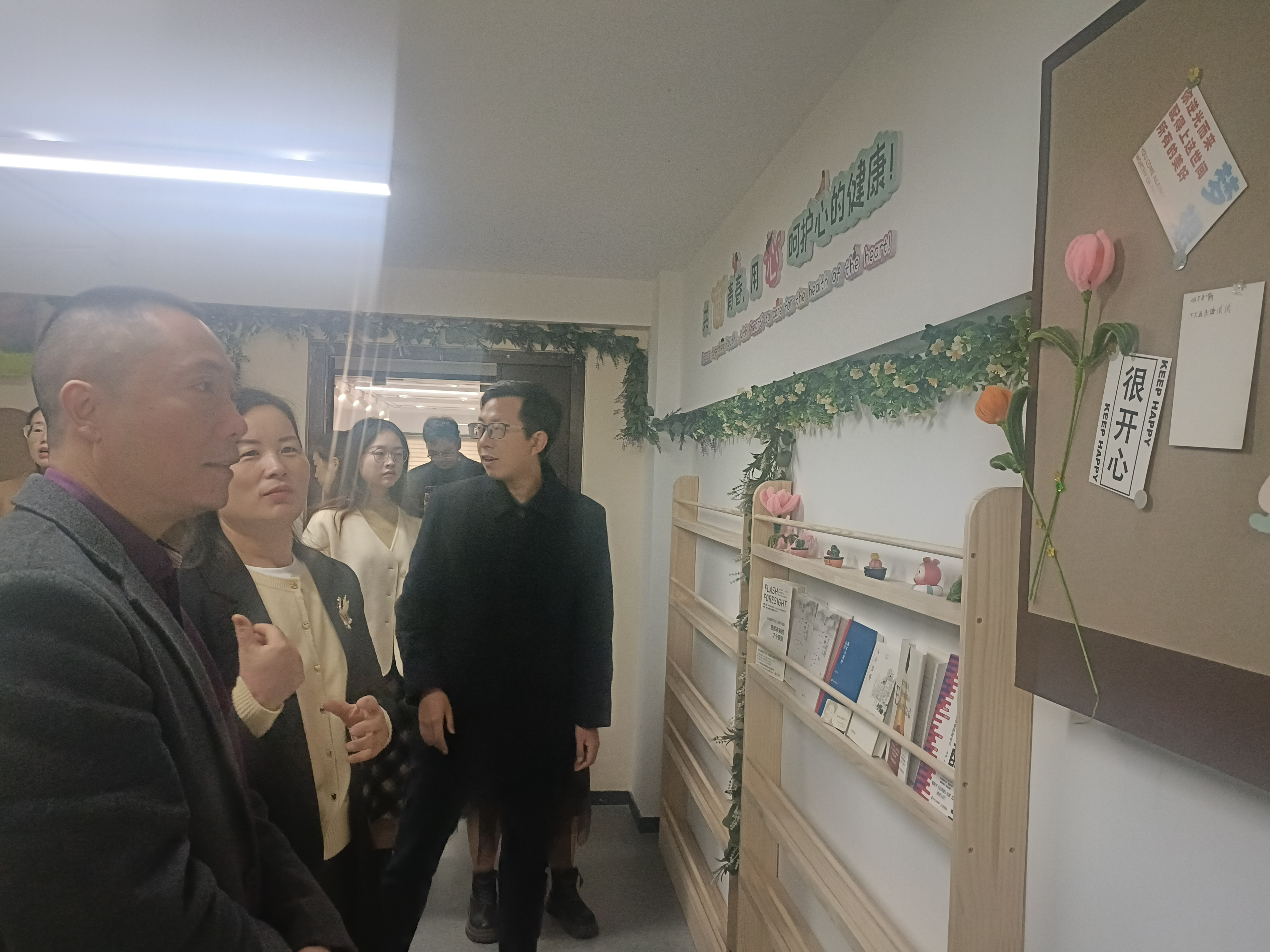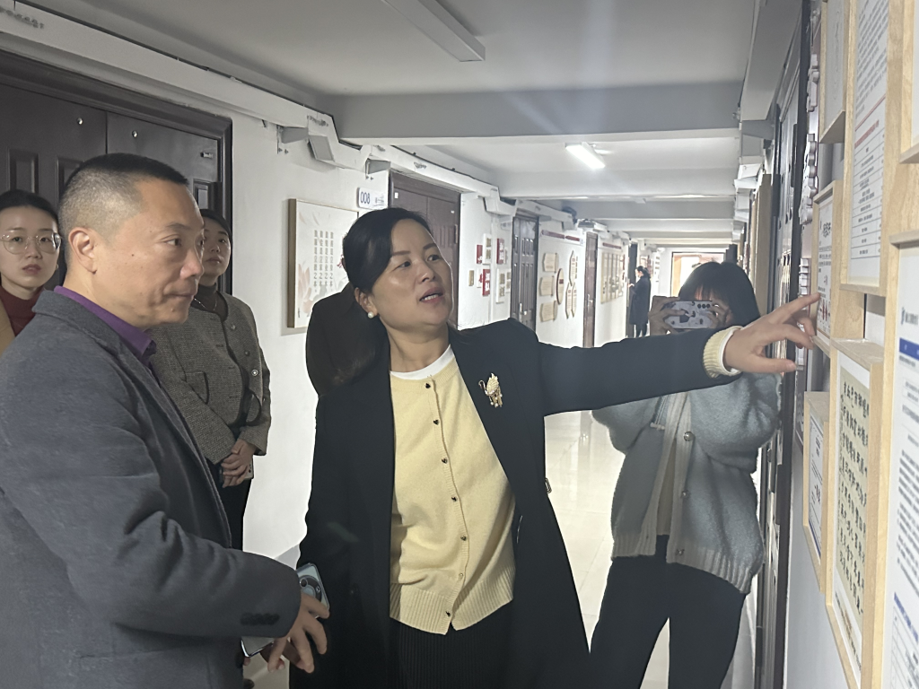 在韩雯琛的带领下,李孝明一行人参观黄色小说 “清风长廊”、共“商”青春心理工作室、共“商”未来生涯工作室、学生自习室及党员之家。