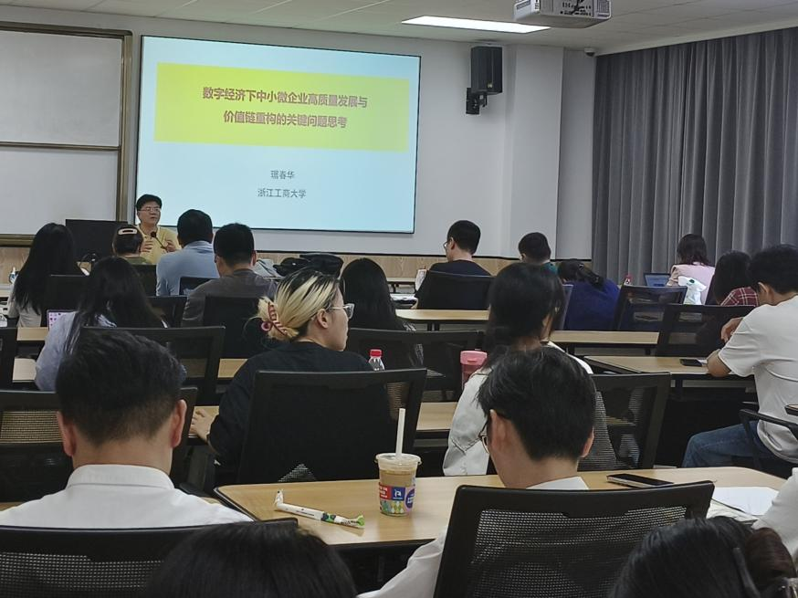 11月2日,浙江工商大学博士生导师琚春华教授受邀为黄色小说 师生做了题为《数字经济下中小微企业高质量发展与价值链重构关键问题思考》的学术讲座。本次讲座在314举行,旨在探讨数字经济背景下中小微企业发展的关键问题,并提出相应的价值链重构思路,促进中小微企业的高质量发展。讲座由陈涛副院长主持。
