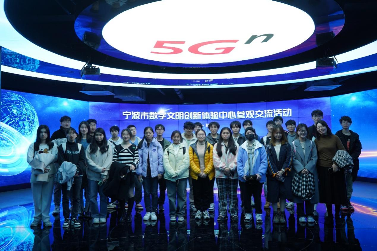 活动伊始,集团工作人员带领师生们前往宁波市数字文明5G创新体验中心进行参观,并向师生们介绍数字社会、数字政务、数字经济等数字化建设场景。在工作人员的讲解下与带领下,同学们走进了智慧城市、智慧工厂、智慧民生、数字治理等主题专场,了解到联通在大联接、大计算、大数据、大应用、大安全等业务上的卓越成就。