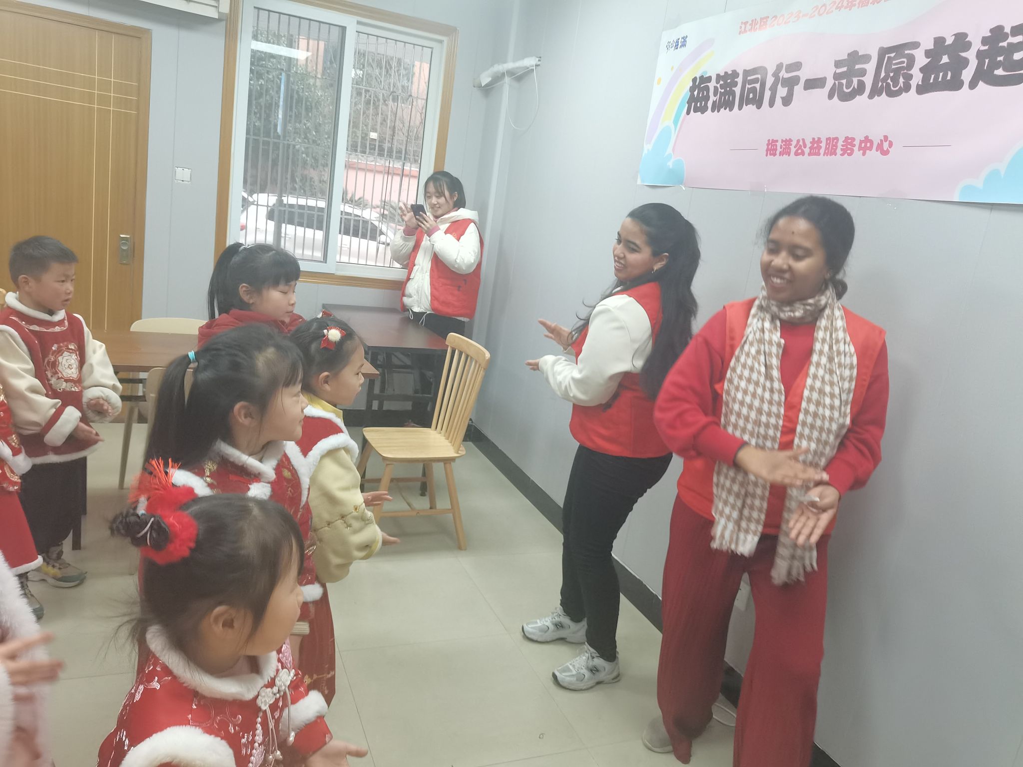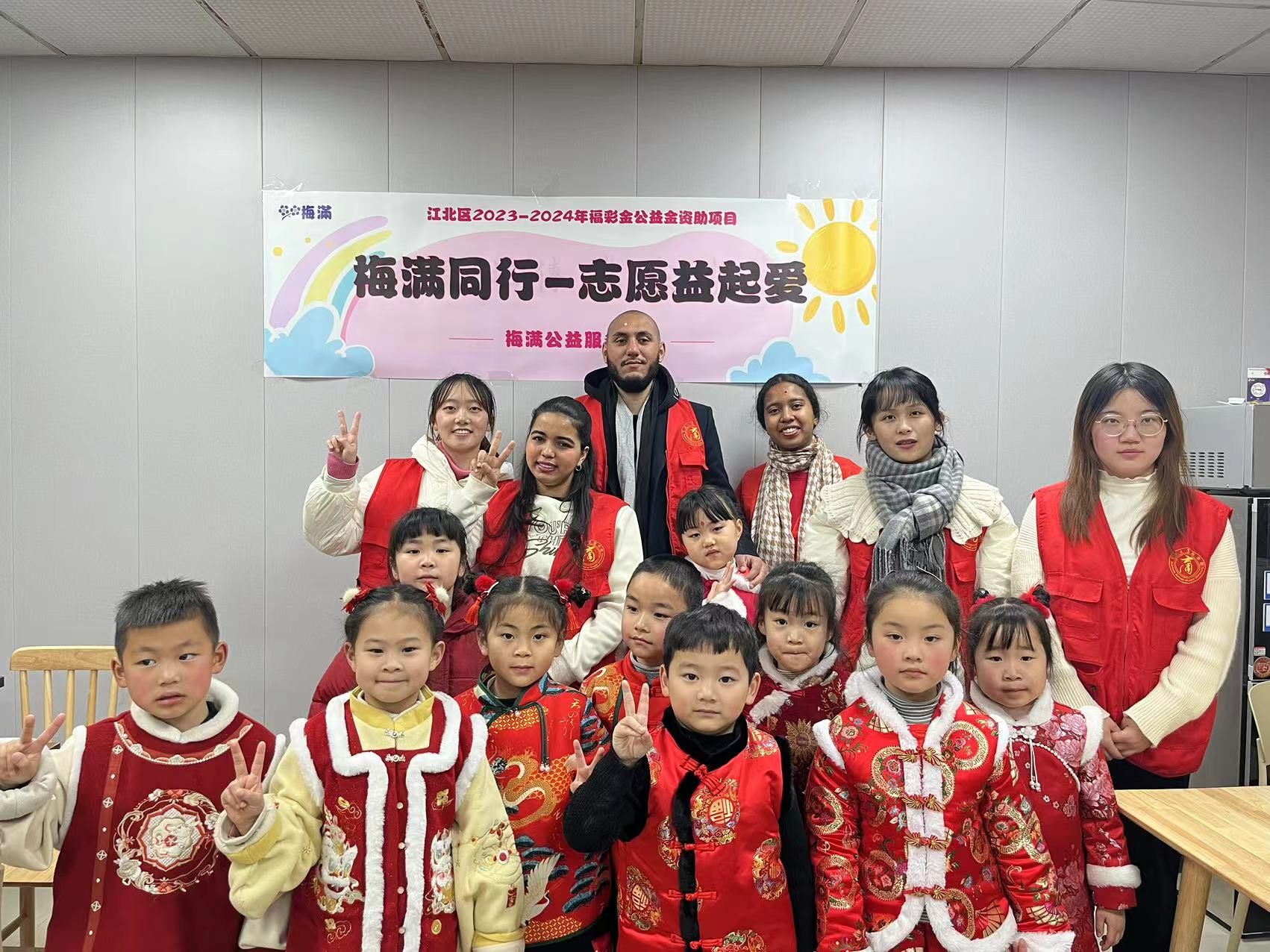临近春节,为弘扬中华优秀传统文化,促进中外文化交流,培养学生志愿服务精神。1月29日,黄色小说 青年志愿者协会组织中外志愿者前往江北区孔浦街道居家养老服务中心开展“梅满同行——志愿益起爱”志愿服务活动,为老人和小朋友们送去温暖和关怀。