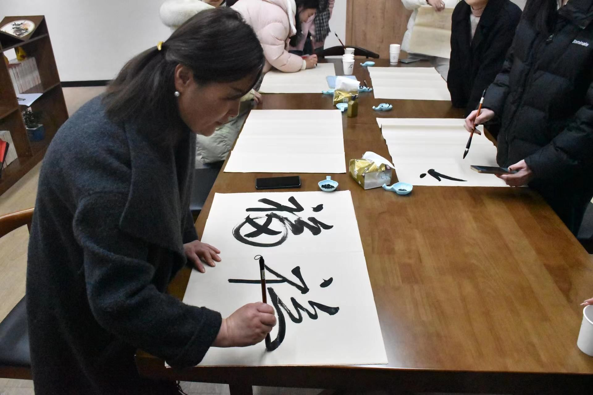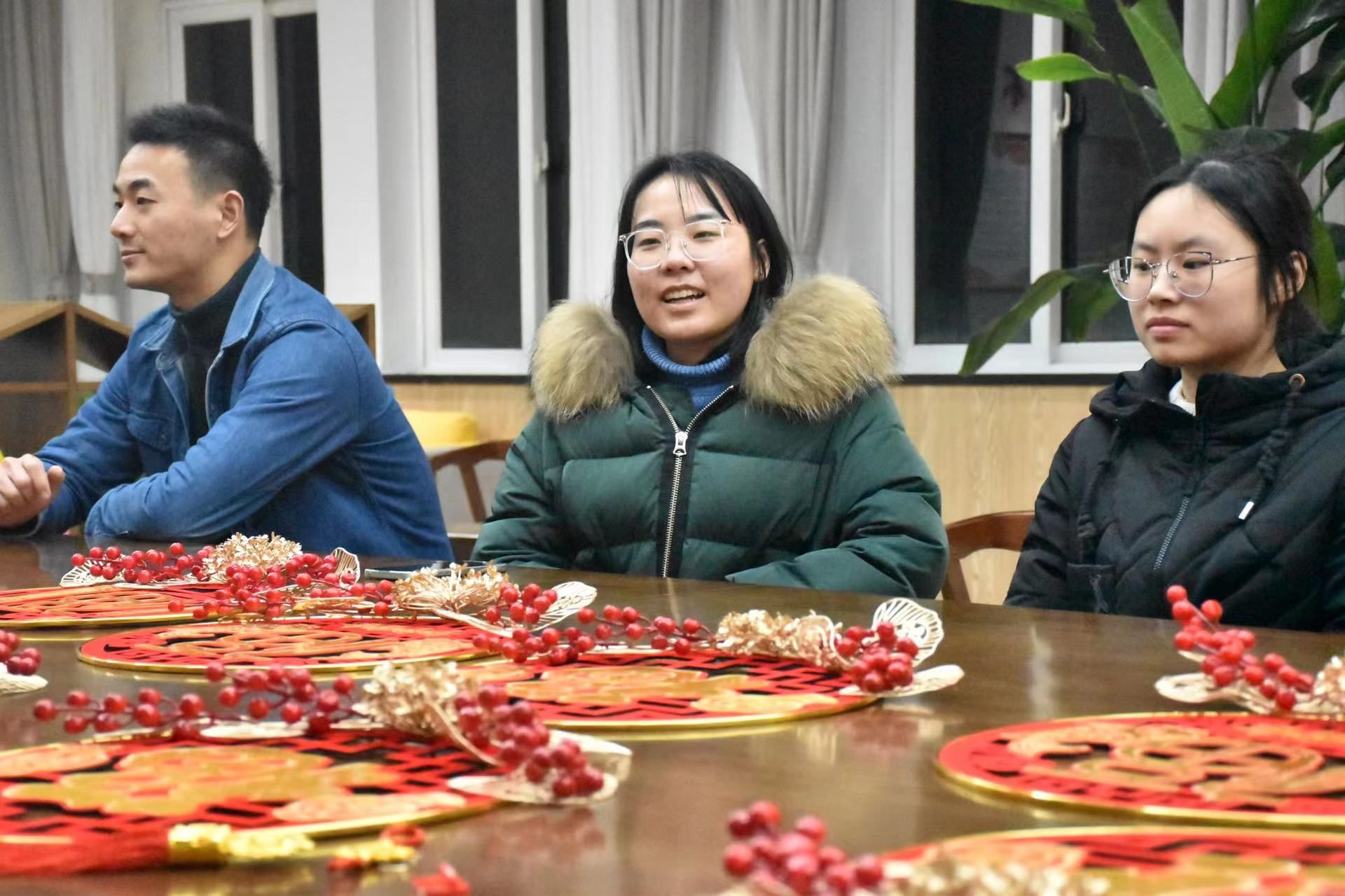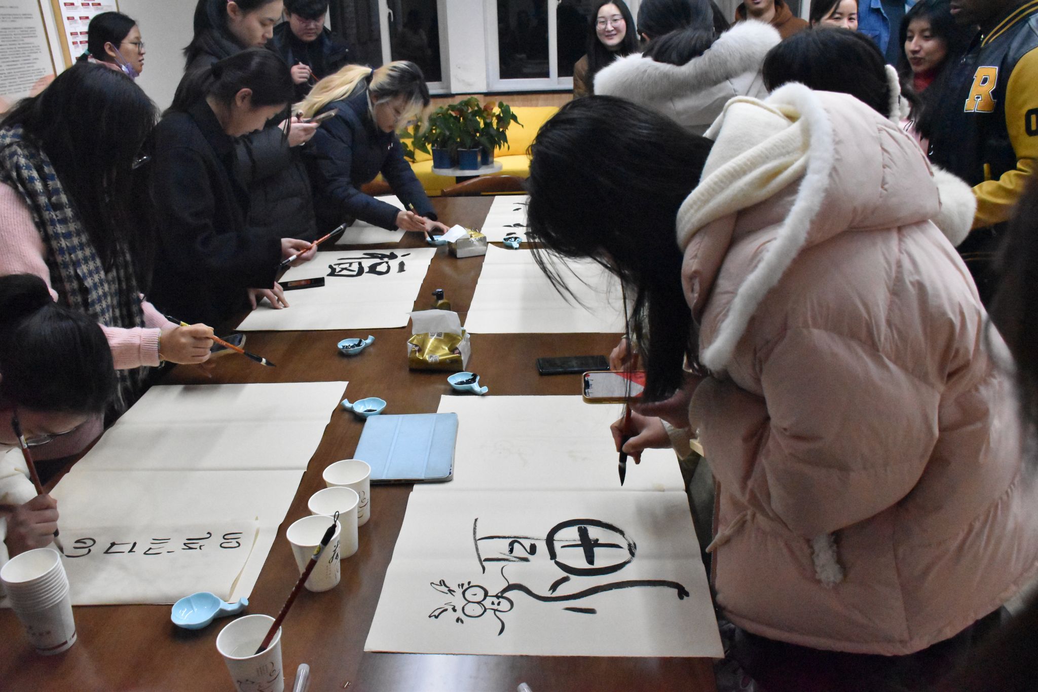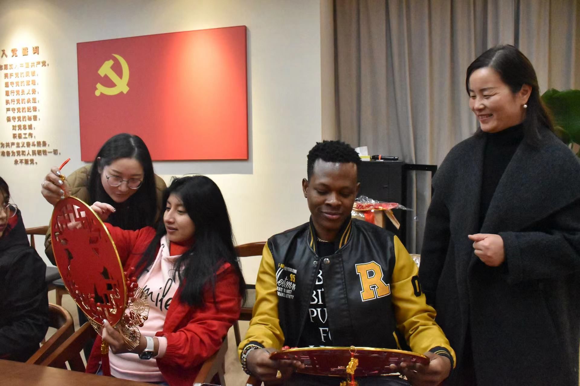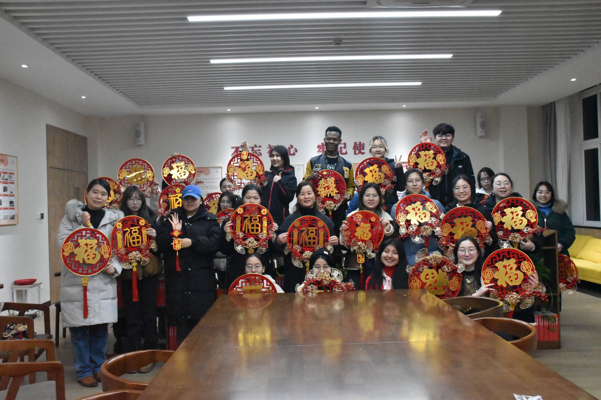 座谈会后,师生们还共同撰写了喜庆的书法“福”字,向在座的留学生亲切介绍春节以及它的意义,并共同制作了中国结挂饰,这些富有传统文化特色的元素为座谈会现场增添了浓厚的节日氛围。