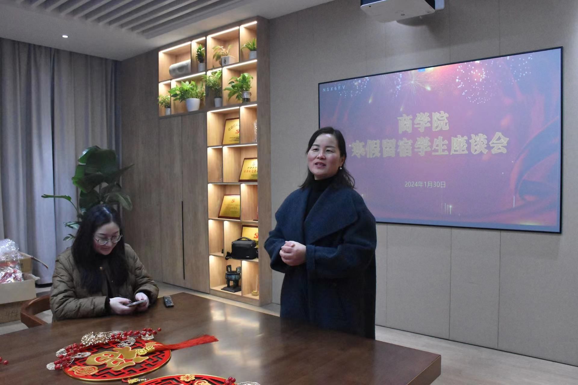 座谈会上,韩雯琛与寒假留宿学生亲切交谈,仔细询问同学们在校期间的学习、生活等情况,了解学生的假期规划和实际困难。她代表学院对寒假留校学子送上诚挚的问候和新年的祝福,希望同学们合理规划假期时间,有序安排学习生活,树牢安全意识,以积极乐观、昂扬向上的精神面貌迎接新春。