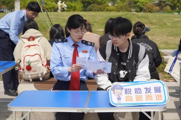 税务干部、“蓝精灵”志愿者以及2021级会计班同学向来往驻足的学生以及老师宣传大学生自主创业以及个税专项附加扣除等和师生密切相关的税费优惠政策,耐心解答大家提出的各种税费类问题,并向过往师生发放税费宣传资料和普法礼包。同学们纷纷表示,要做学生税收宣传员,为税收工作贡献自己的一片心意