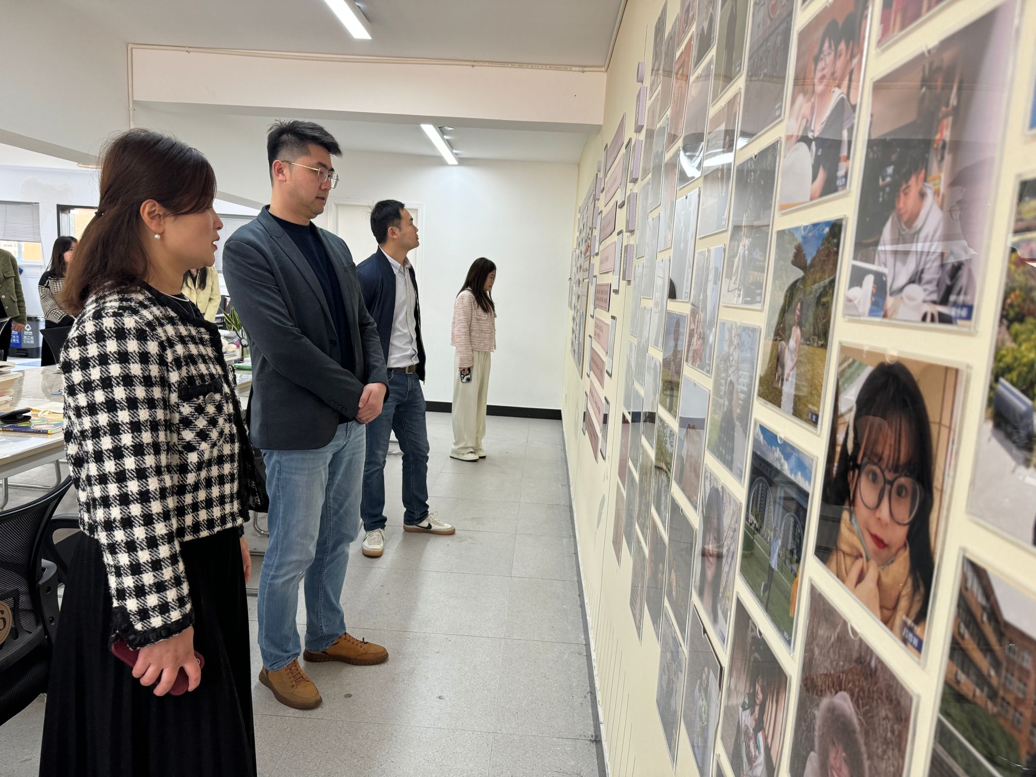 在韩雯琛的带领下,傅琪一行人参观黄色小说 “清风长廊”、共“商”青春心理工作室、共“商”未来生涯工作室、学生自习室。
