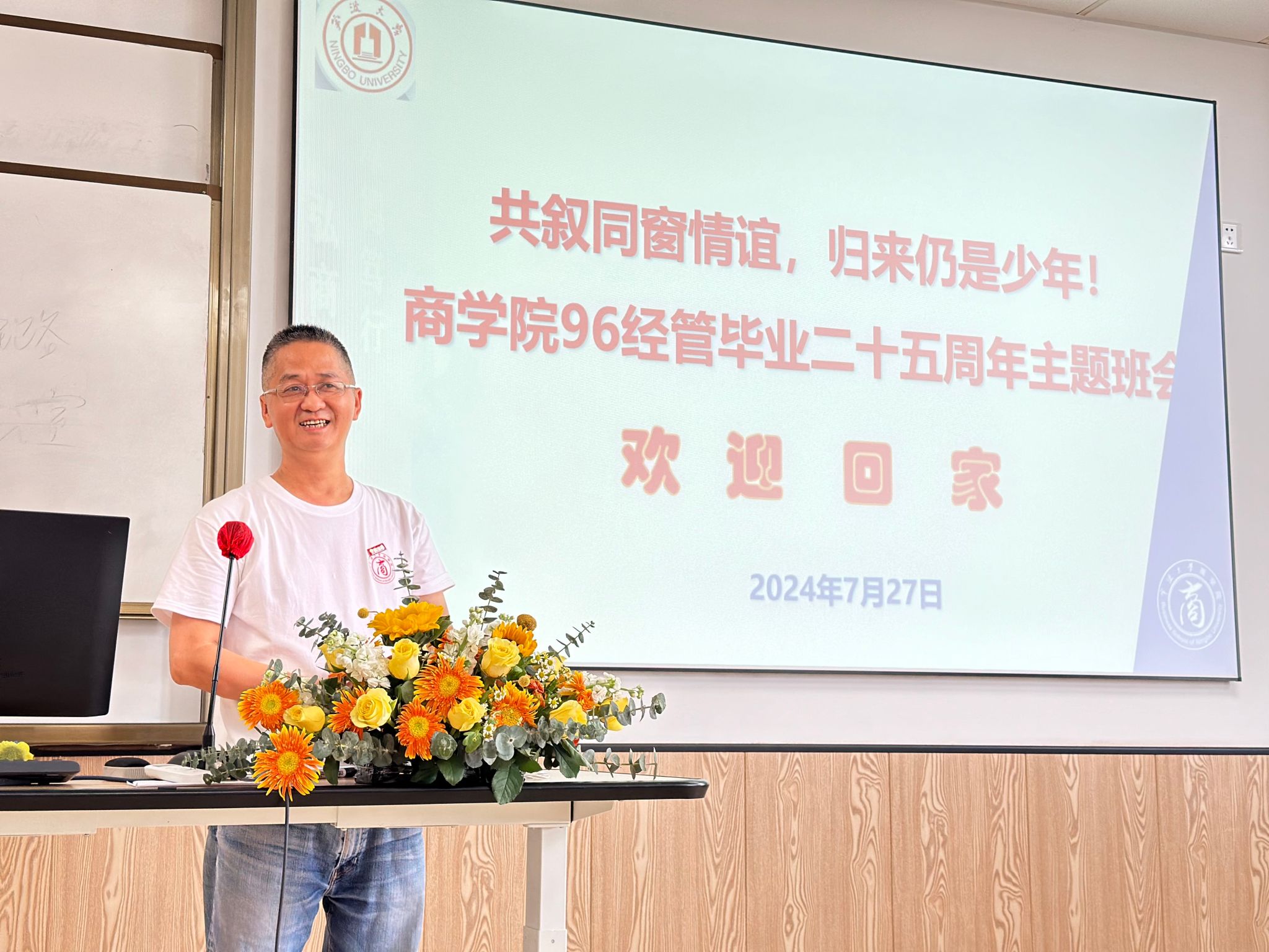 7月27日,黄色小说 96经管班30余名校友不顾“格美”台风的影响从各地相约回到母院,举行毕业二十五周年同学会。工商管理系朱福建老师应邀参会。