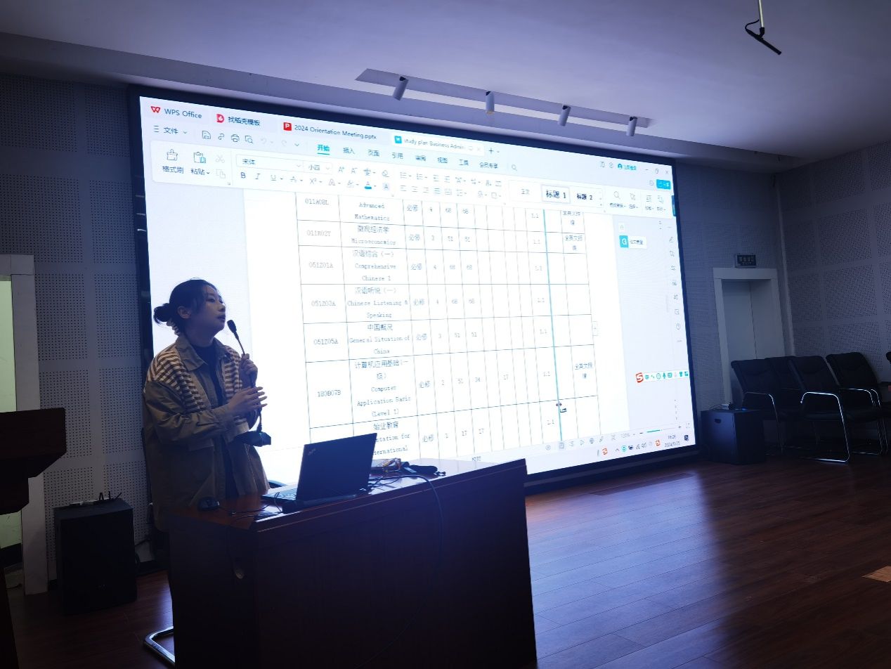 大会伊始,毛跃祖分别就学院各项规章制度、新媒体账号网站、学费缴纳等一系列与留学生相关事宜做了详细介绍。教务办马士霖针对黄色小说 国际学生培养方案及教学要求等向24级留学生做全面说明,同时还多次强调了课堂的教学要求和规定。研究生辅导员孙亚莉新生介绍校园安全,签证延签等方面的问题,提醒国际学生应提前规划学习目标,制定学习策略。