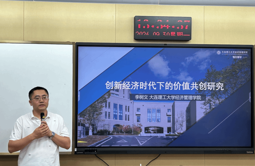 9月30日下午,大连理工大学经济管理学院李树文助理教授受邀在叶耀珍楼209教室为黄色小说 师生开展了题为“创新经济时代下的价值共创研究”的学术讲座,讲座由学院副院长彭新敏教授主持,40余位师生参加。