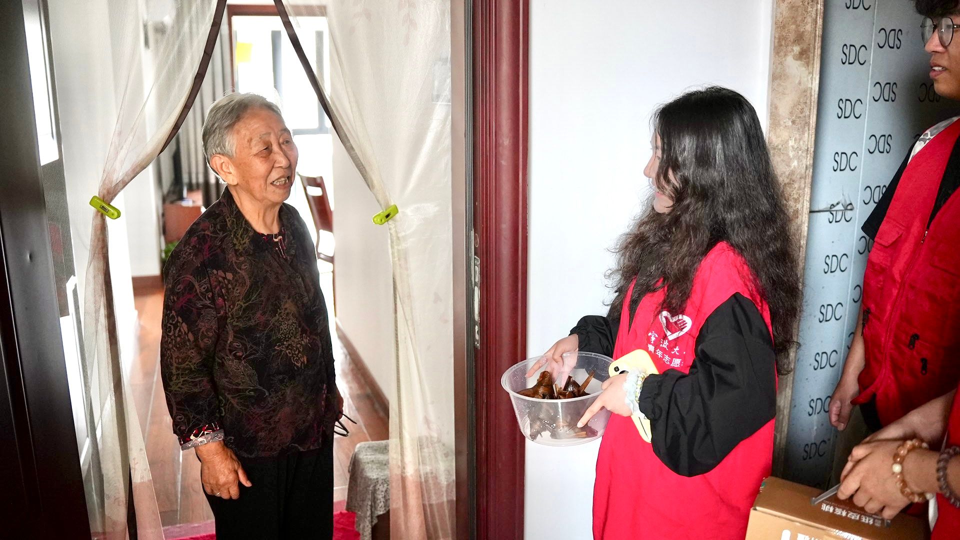 据悉,学生们还一起体验了“清廉粽”搜搜看、艾草船制作,还将包好的粽子送到社区孤寡老人和抗战老兵手中。