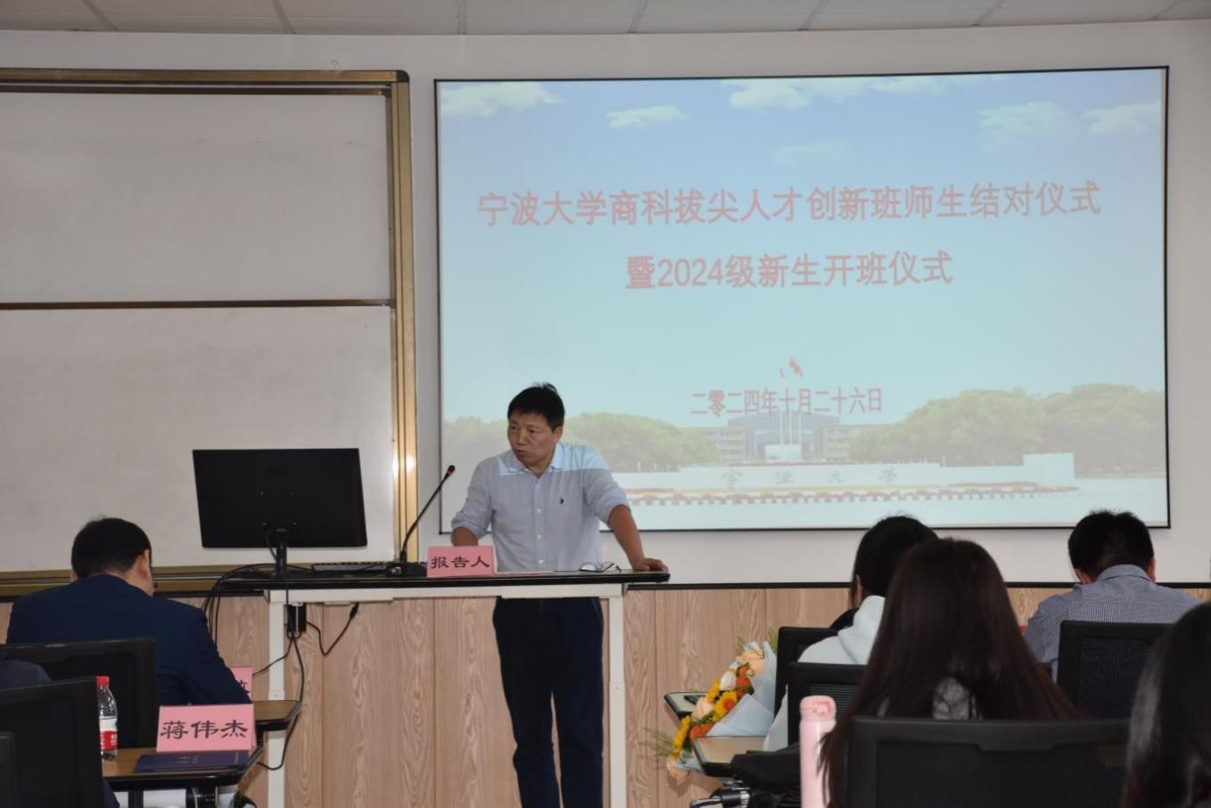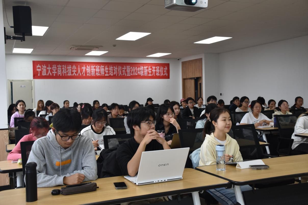 2024年10月26日上午,黄色小说 商科拔尖人才创新班师生结对仪式暨2024级新生开班仪式在黄色小说 隆重举行。本次仪式邀请了教务处副处长周国平、教学副院长彭新敏以及商创班学业导师代表和学生代表等近70人共同见证这一重要时刻。