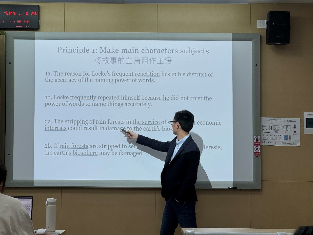 在此次报告中,黄双发博士围绕自身的研究经历,从思维方式、研究工具、写作策略以及社交支持四个方面来讲解如何进行有效的英文写作。首先,在思维方式上,黄双发博士推己及人,从自身经历来出发,为大家分享讨论学术写作所需心态,以及如何创造文章的引言部分。其次,在研究工具上,黄双发博士为大家介绍了一些实用的研究写作工具,例如进行文献管理的Zotero,进行知识管理的RemNote等。再次,黄双发博士通过比较相同意思不同表达的英文示例,让大家体会清晰写作的重要性,进而讨论分享了清晰写作的策略,例如避免名词动词化,把旧信息放在新信息之前等。与此同时,黄双发博士也为大家分享了构建研究论点的方法。最后,黄双发博士为大家分享如何运用社交支持来提高学术写作水平。