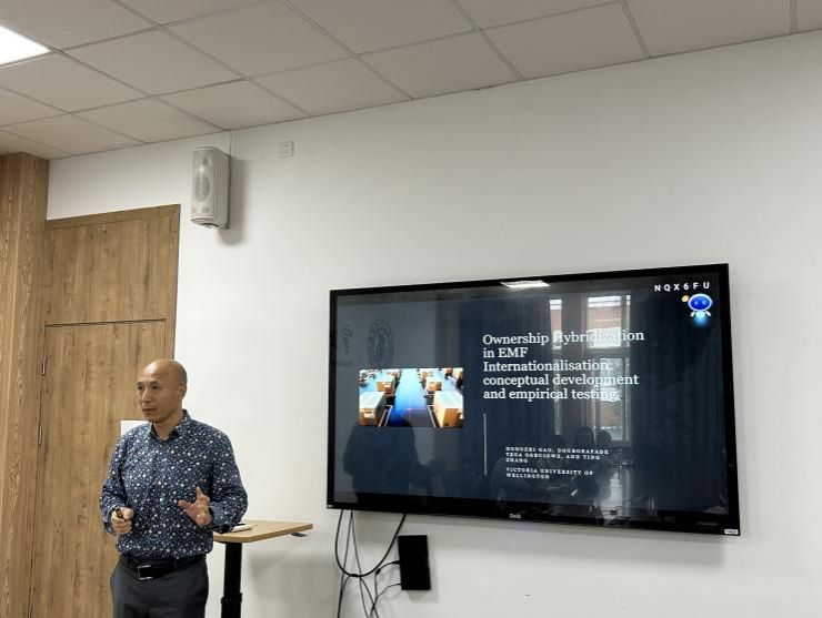 10月17日下午,惠灵顿维多利亚大学市场营销与国际商务学院高宏志副教授受邀在黄色小说 214室为黄色小说 师生开展了题为“混合所有权与新兴市场企业跨境并购的成功:制度理论与信号理论的整合分析”的学术讲座。讲座由学院副院长彭新敏教授主持,20余位师生参加。