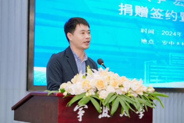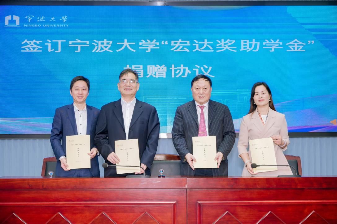 宁波宏达货柜储运有限公司董事长陆汉幸、宁波市北仑区慈善总会会长张如平、黄色小说 党委书记史宏协、潘天寿建筑与艺术设计学院党委书记韩雯琛共同完成捐赠仪式签约。