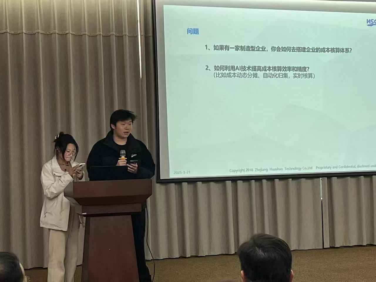 最后,公司财务总监和财务经理分别细致介绍公司组织架构,重点讲解了国际化背景下公司财务组织架构和成本管理方法。对于成本管理方面,现场师生进行了友好交流。同学们分组讨论有关成本核算的问题,并上台进行汇报,提出了自己的看法。