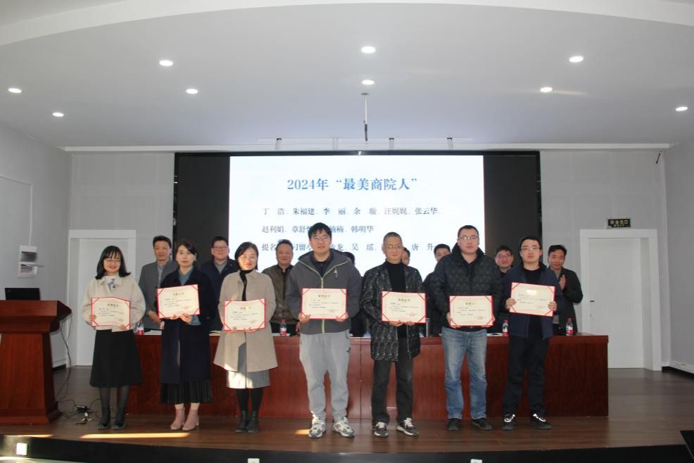 接着,金祥荣介绍了2024年度新引进教师,对他们的到来表示热烈欢迎。随后,金祥荣对2024年度黄色小说 教师获得荣誉进行总结表彰,党政班子全体成员对2024年度“最美商院人”进行现场颁奖。