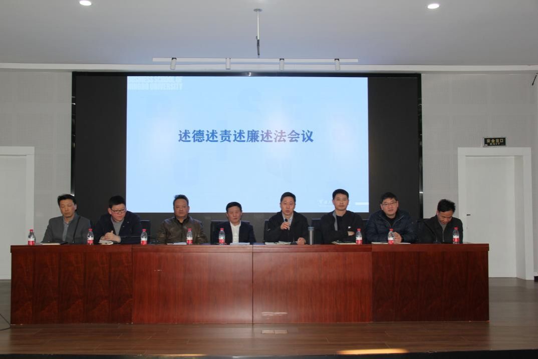 会议首先由院长金祥荣、院党委书记史宏协作述德述责述廉述法报告,他们逐一发言,代表班子和个人从“德、能、勤、绩、廉”等方面作总结汇报。