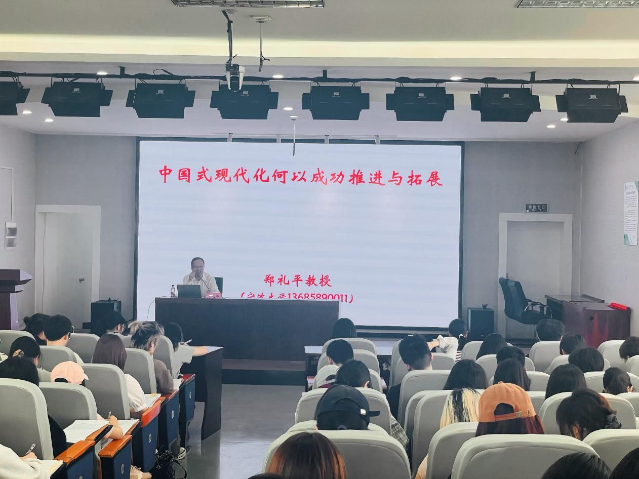 5月7日下午,马克思主义学院郑礼平教授在曹光彪楼501报告厅为黄色小说 180余名师生讲授以“中国式现代化何以能成功推进和拓展”为主题的形势与政策课。