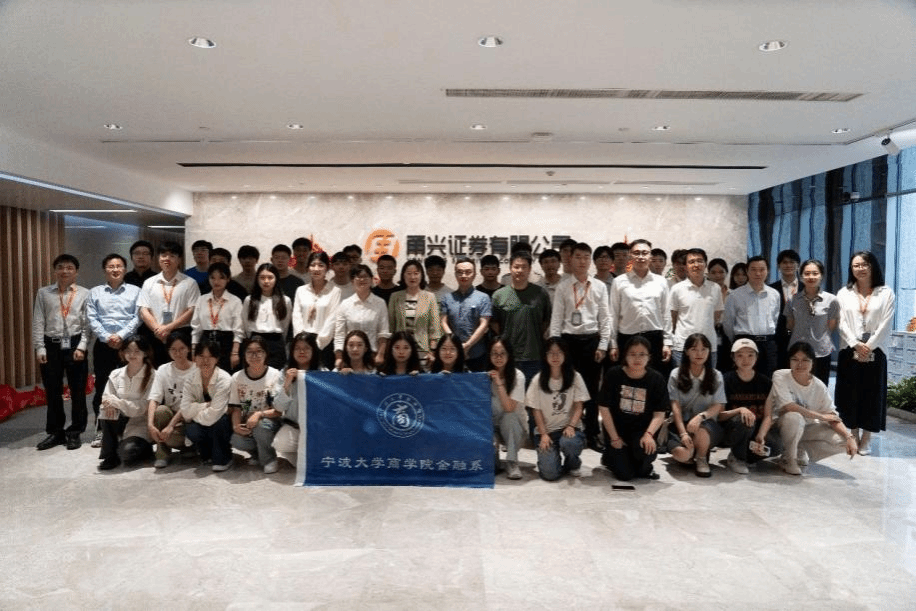 为深入践行新时代劳动教育理念,拓宽学生金融视野和提升实践能力,在宁波市证券期货业协会支持和协调下,黄色小说 与甬兴证券于5月23日下午携手举办了主题为“证券行业初探——走进甬兴证券”的专业劳动实践活动。金融系邱波教授、胡育蓉副教授带领2022级金融本科生一起体验这场金融职业之旅。