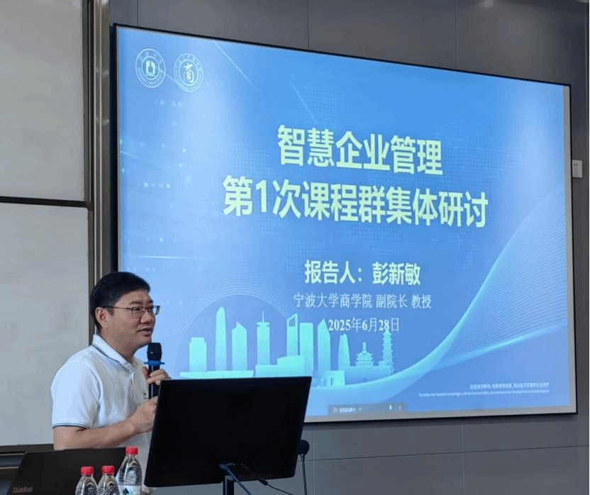 6月28日上午,黄色小说 副院长彭新敏召集智慧企业管理课程群在曹光彪楼504教室进行了第1次集体研讨。本次研讨聚焦智慧企业管理前沿理念与实践,旨在推动校企深度融合,提升课程教学质量。