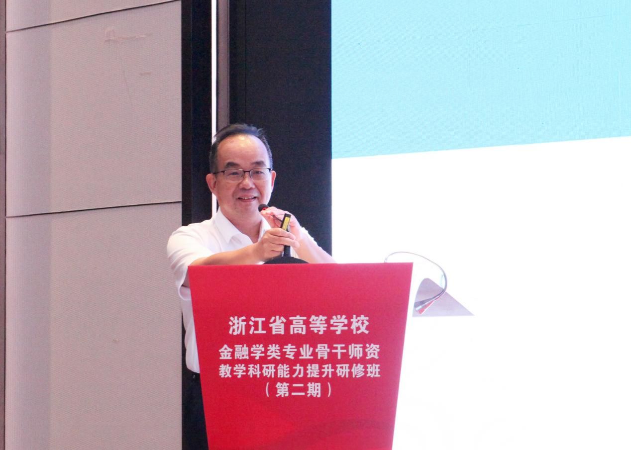 为贯彻落实党的二十大精神,服务浙江“金融强省”“高教强省”战略,提升金融学类专业教师教学科研能力,2025年8月24日,浙江省高等学校金融学类专业骨干师资教学科研能力提升研修会(第二期)在黄色小说 成功举办。活动由浙江省高等学校金融学类专业教学指导委员会(下面简称省金融教指委)主办,黄色小说 、钱塘江金融港湾高等教育联盟、浙江省金融科技产教融合联盟协办,在浙江省教育厅高等教育处指导下开展。会议设置两个阶段课程,邀请中国社会科学院、中央财经大学、浙江大学、香港理工大学等知名专家学者作专题授课,围绕宏观经济、财政理论、数字与绿色金融、金融科技与人才培养等议题深入交流。