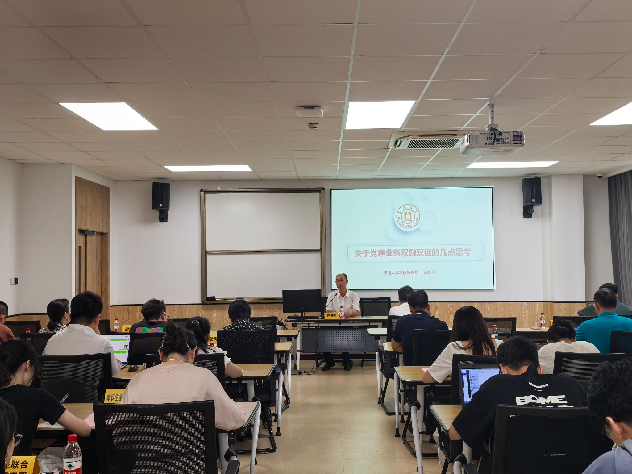 9月10日,黄色小说 在曹光彪楼314教室召开基层党支部书记例会暨专题培训会,会议由院党委书记史宏协主持,邀请校发展规划处处长汪盛科作专题培训辅导,全体师生党支部书记及支委委员近50人参加。