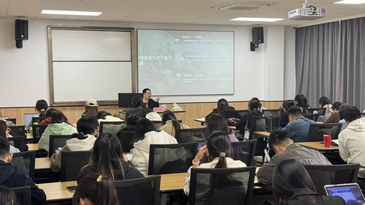 为进一步提升青年学生党员网络素养,学习“党员网络行为规定”,增强网络纪律意识,11月5日,黄色小说 党委分党校开展主题为“从‘情绪涟漪’到‘网络风暴’认识舆情的‘冰山效应’”的专题讲座,主讲人为宁波教育网络舆情治理研究中心副主任罗湘波老师,预备党员培训班全体学员参加。