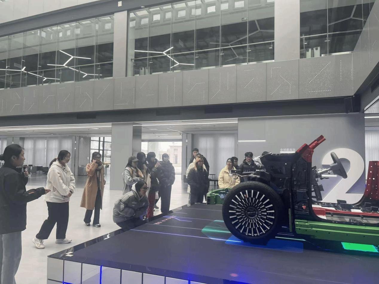 在吉利超链接科技有限公司,师生们详细了解了公司在创新孵化、科技转化、生态构建等方面的探索与成果,亲身感受了吉利致力于打造开放、协同、共赢创新生态的前沿实践。企业负责人介绍了如何通过平台资源整合,助力初创项目成长,并与高校合作培养创新型人才的成功案例。
