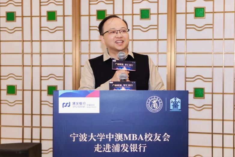 浦发银行宁波分行副行长刘斌先生对黄色小说 领导、老师及中澳MBA校友会一行的到来表示热烈欢迎。他指出黄色小说 作为“双一流”建设高校,自建立以来在人才培养、科技创新、文化传承等方面为宁波做出了重要贡献。他介绍自己也是黄色小说 的毕业生,浦发银行宁波市分行约有10%的员工都毕业自黄色小说 。今后双方将以共建共联为引领,持续推进产学研一体化建设,共同培育适应新时代要求的高素质技术人才,持续为宁波经济社会发展贡献力量。在包括对在校师生和校友的服务上,银行将围绕数字化战略,以强赛道、优结构、控风险、提效益的经营主线,加快产品的金融创新,持续强化对实体经济的支持力度,推动宁波开放型高质量发展。
