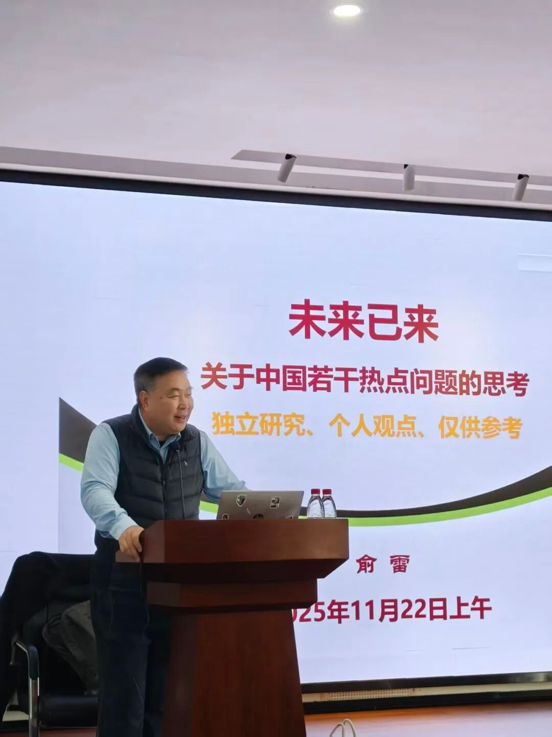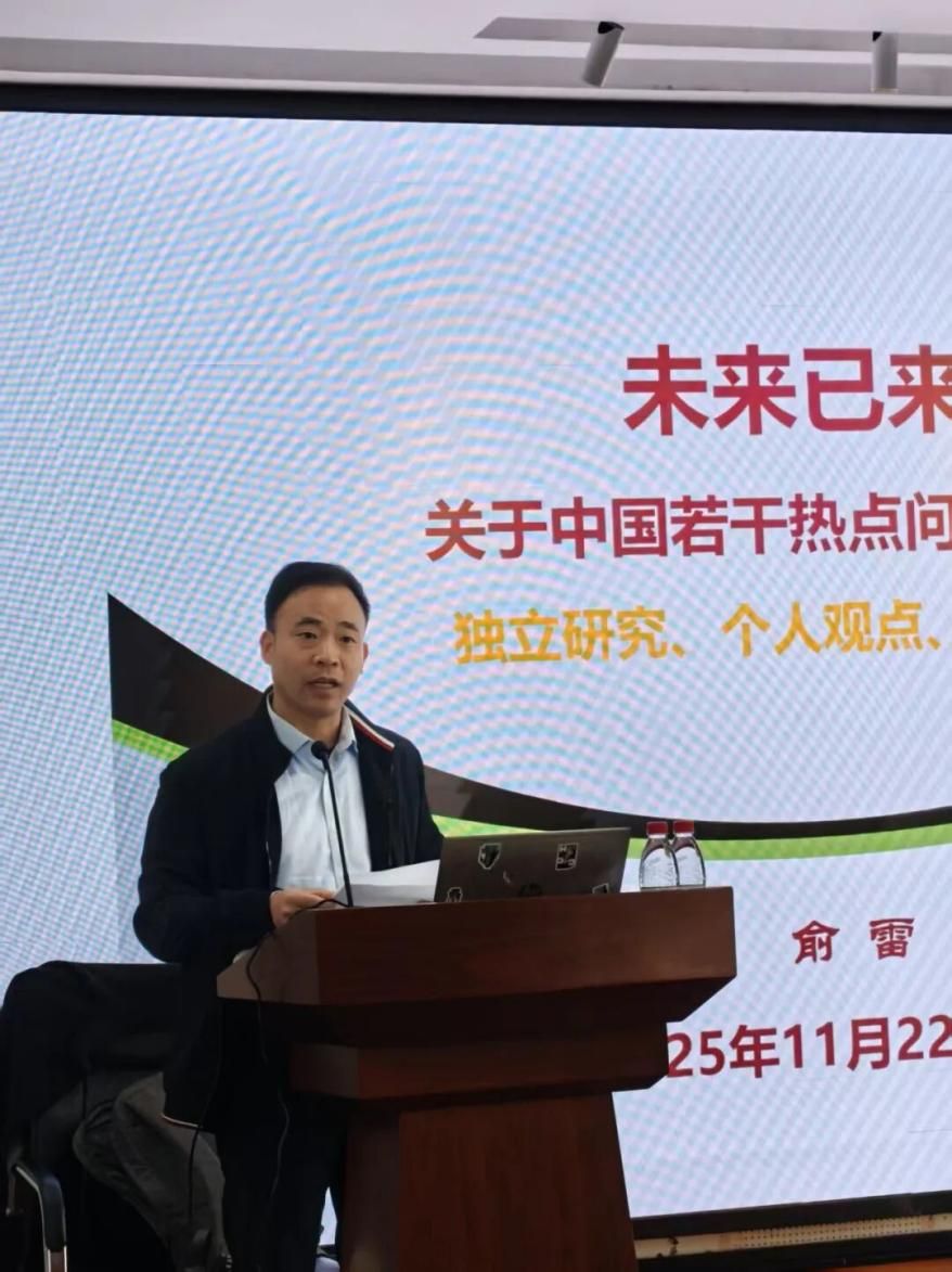 俞雷教授结合自身丰富的政企实践经验与前沿研究视野,从中国经济、中美关系、“十四五” 产业复盘、“十五五” 发展遐想等核心维度展开分享,为现场师生及从业者带来一场兼具思想深度与实践价值的知识盛宴。