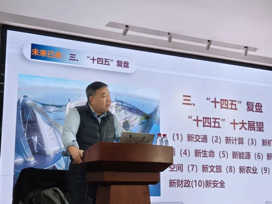 谈及中美关系,俞雷教授用危墙定律和浮萍效应等理论展开分析。在复盘 “十四五” 发展时,俞雷教授梳理了十大领域突破:新交通、新计算、新机器、新生命、新能源、新空间、新文旅、新农业、新财政以及新安全。展望 “十五五”,俞雷教授提出需在不确定性中锚定六大确定性:把握已经明确的道路和方向、抓住数字化和AI机遇、学习方法论、比别人早一步看到未来趋势、利用杠铃策略寻求战略突破、坚持底线思维选择谨慎财务。