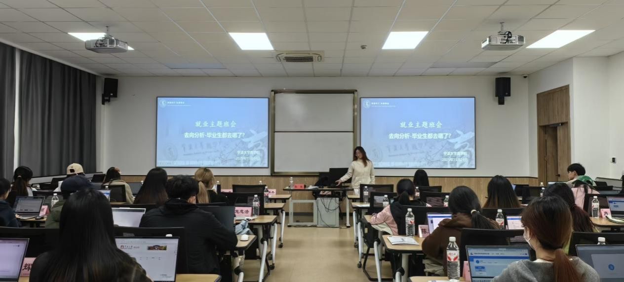 为引导学生明晰就业形势,树立正确的成才观、职业观与就业观。11月24日,黄色小说 组织各专业学生开展了以“明晰未来,职引前程”为主题的就业育人班会。涵盖2022级、2023级、2024级本科学生代表,班会旨在通过数据解读、政策宣讲、经验分享等形式,为同学们提供生涯发展指导,本次班会由就业辅导员马璐璐主持。